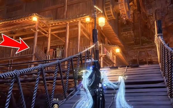 2. 触发任务:传送至不见山「墨城入山口界碑」,向左走找到两条木桥,从左侧木桥跳下后上台阶,窃听屋内张槊与阿兰的对话,触发任务。