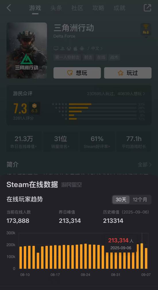 上个月《三角洲行动》正式登陆PS5和Xbox Series主机后,反向助推PC版玩家数量激增。