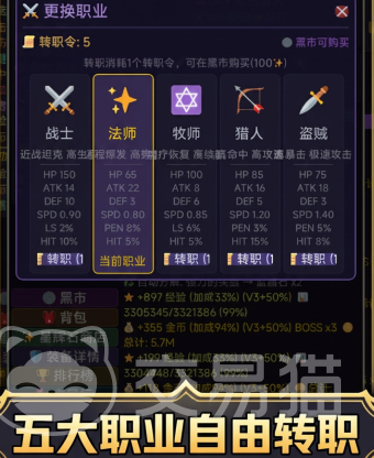 开局阶段,玩家需从五大初始职业中选定其一作为角色起点。每个职业均设有独立的成长路线与转职分支,支持多次自由切换,无锁定限制。开荒策略高度依赖玩家对职业特性、属性加成及技能协同逻辑的理解,强调前期规划与长期养成的平衡。