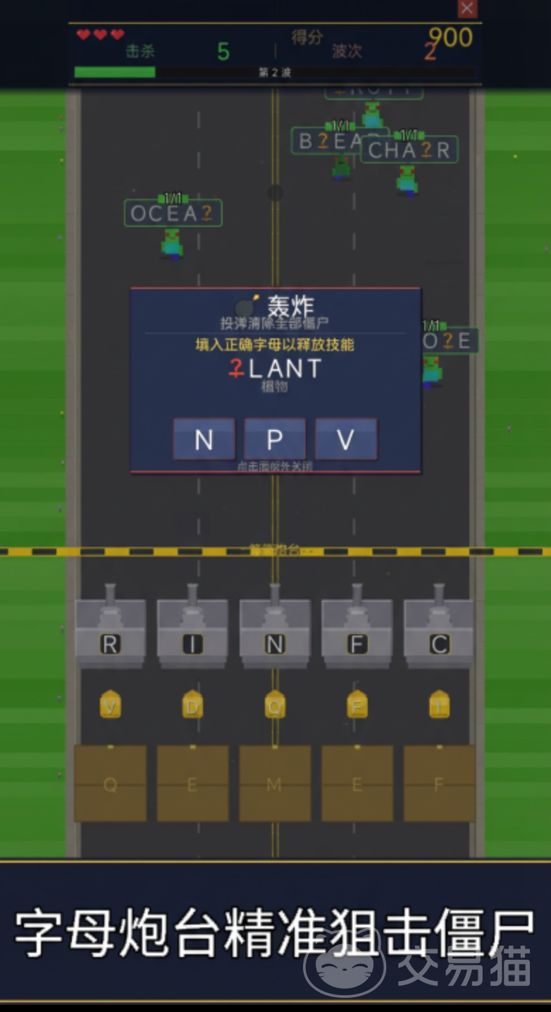 游戏采用差异化关卡设计,每张地图均呈现独特环境——从日常城市街道延伸至幽邃深海区域,场景风格多变且细节丰富。玩家唯一可用的攻击手段是“字母炮台”,通过精准输入缺失字母补全完整英文单词,从而触发有效攻击。成功拼写不仅可消灭对应僵尸,还将激活连击系统(Combo),随连击数递增,角色攻击力与技能效果同步提升,挑战难度亦随之动态升级。