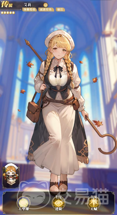 艾莉:稀缺型弹幕吸收 减速控场角色。每次命中敌人施加减速效果,并可主动吸收敌方飞行弹幕。进阶后弹球伤害提升30%,自身耐久同步增强;每吸收一次弹幕,伤害提升10%,最多叠加10层;随着“羊绒”直径扩大,除减速外,还会为目标附加20%易伤状态,形成稳定控场与增伤循环。