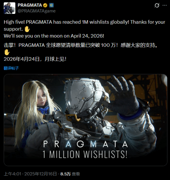 今日凌晨,卡普空“跳票萝莉”新作《识质存在》官方宣布,本作的愿望单累计已突破100万!官方同时还强调,游戏将于2026年4月24日正式发售。