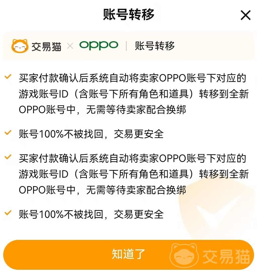 每个商家都会展现出自身的芝麻信用情况以及进行认证的情况,买家可以选择那些信用良好的进行交易,也可以减少问题发生的几率。针对九游等少数几个平台,还推出了账号转移服务,直接将号里面的各种资料转移到买家号中,彻底杜绝了各种问题发生,这项服务覆盖的范围也在不断扩展,是现在最安全的交易方式。