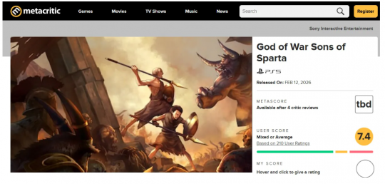 在Metacritic网站上,《战神:斯巴达之子》的用户评分为7.4分,是该系列中最低的。不过,这个分数也并不算差,只是一般水准。但这可是《战神》,所以8分以下在玩家眼里其实就是口碑不太好的作品。