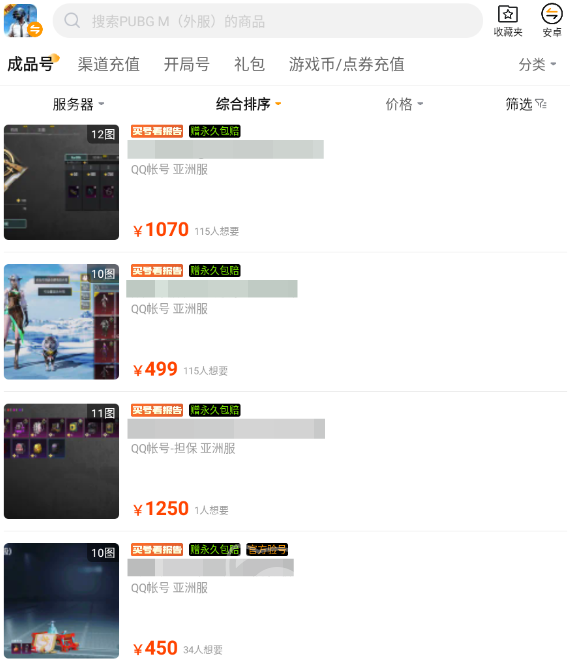 平台之所以备受青睐且好评众多,核心在于它的海量真实可筛选的账号商品库。对于想要买PUBG武器皮肤的玩家而言,你可以在上找到最全的武器皮肤资源,比如热门赛季限定枪皮、绝版联动涂装和冷门的饰品一应俱全,不论是追求颜值的收藏党,还是想体验绝版皮肤手感的实战玩家,都能精准的找到心仪好物。平台打造了一个结构化智能筛选体系,可以按照皮肤类型,枪械品类和价格区间等维度精准的搜索,还能够直接点击账号,看实机的账号截图、皮肤清单,还有历史充值记录等,不用大海捞针比价,选品效率拉满,轻松加入到高性价比的皮肤号。