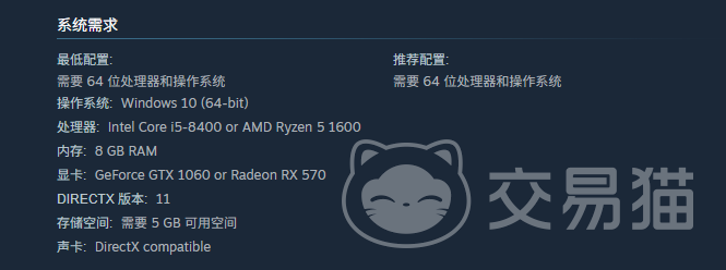 根据当前官方公布的系统需求,该游戏整体配置要求较为亲民。CPU最低需Intel Core i5-8400或同性能级别处理器;内存建议不少于8GB;显卡方面,NVIDIA GeForce GTX 1060即可满足基础画质流畅运行;安装空间初始占用约5GB,考虑到后续版本更新及资源包扩充,推荐预留至少7GB可用存储空间。