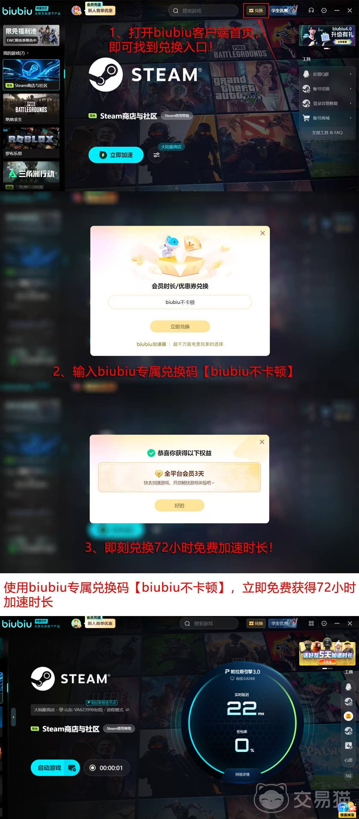 该加速工具已与PUBG职业选手xdd建立合作关系,持续优化多人联机场景下的响应表现。当前新用户注册后可获赠24小时免费加速时长;另提供限时福利活动,输入兑换码【biubiu不卡顿】即可额外领取72小时加速权限,累计可达96小时免费使用额度。