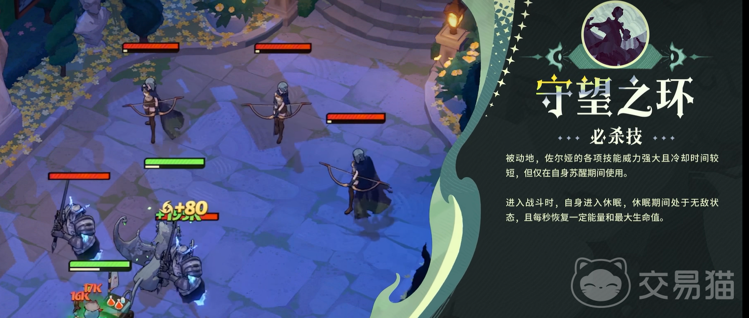 其核心机制集中于大招【守望之环】:该技能不仅提供范围伤害与群体晕眩效果,更附带全程无敌状态。值得注意的是,佐尔娅开局即进入不可选中、不可交互的休眠阶段,此时不参与战斗,队伍实际以四人应敌;待休眠结束,她自空中降临战场,同步触发满血满能重置。此机制意味着——即便己方其他单位全灭,只要佐尔娅未被提前打断休眠,仍可独立完成状态恢复并重返战局。此外,队友对其施加的能量回复行为可直接缩短休眠时长,为阵容搭配预留了明确的协同空间。