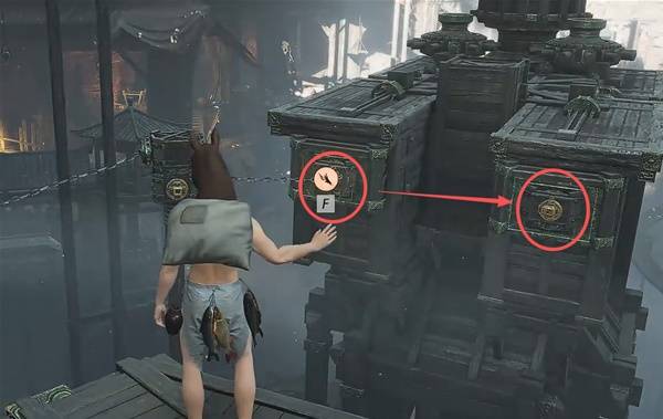 水车开始转动之后,就可以使用【摄星拿月】把中间柱子机关上的和两边链接起来,吊桥就放下了。