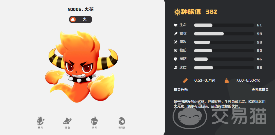 首推精灵为火花。作为火系输出核心,其克制面覆盖绝大多数地面系常规NPC,配合自身较高的基础攻击种族值,可轻松应对前期多数非水系环境。推荐性格为固执或开朗,优先保障物攻输出或出手权;技能配置建议以火焰漩涡、烈焰突击为主,辅以保护类技能提升容错率。火神作为同系高阶形态,在中后期仍具备持续作战能力,若搭配恶系物理技能(如暗袭要害),可进一步拓展打击面。