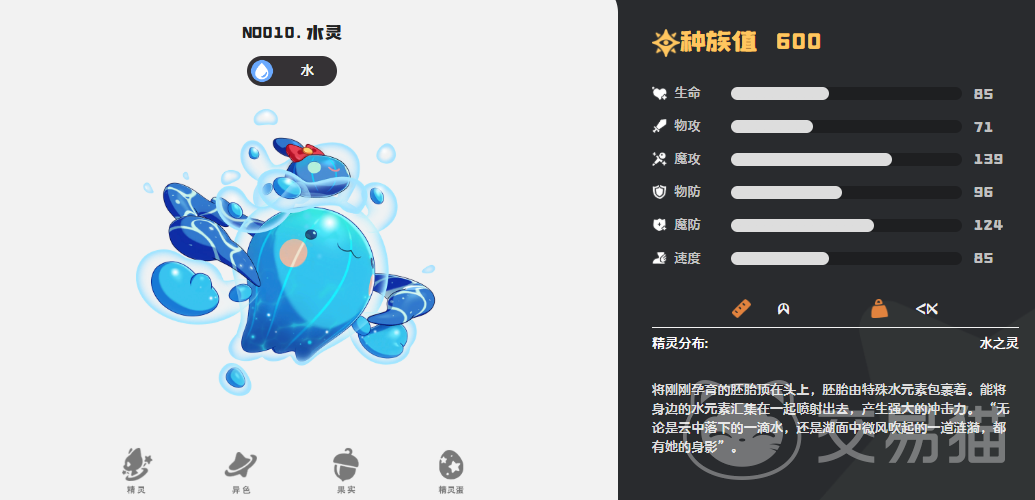 第二位推荐水灵。该精灵拥有典型水系优势,对火系与地面系NPC形成双重克制,且生存能力突出。其核心机制在于水泡盾与水炮的协同循环:水泡盾提供护盾与反伤,水炮维持稳定输出,天洪则强化清场效率。推荐性格为胆小或温和,确保特攻成长不被稀释;速度方面需通过技能或努力值适当补足,避免被先手压制。高坦度特性使其在面对多波次敌人时表现尤为稳健。