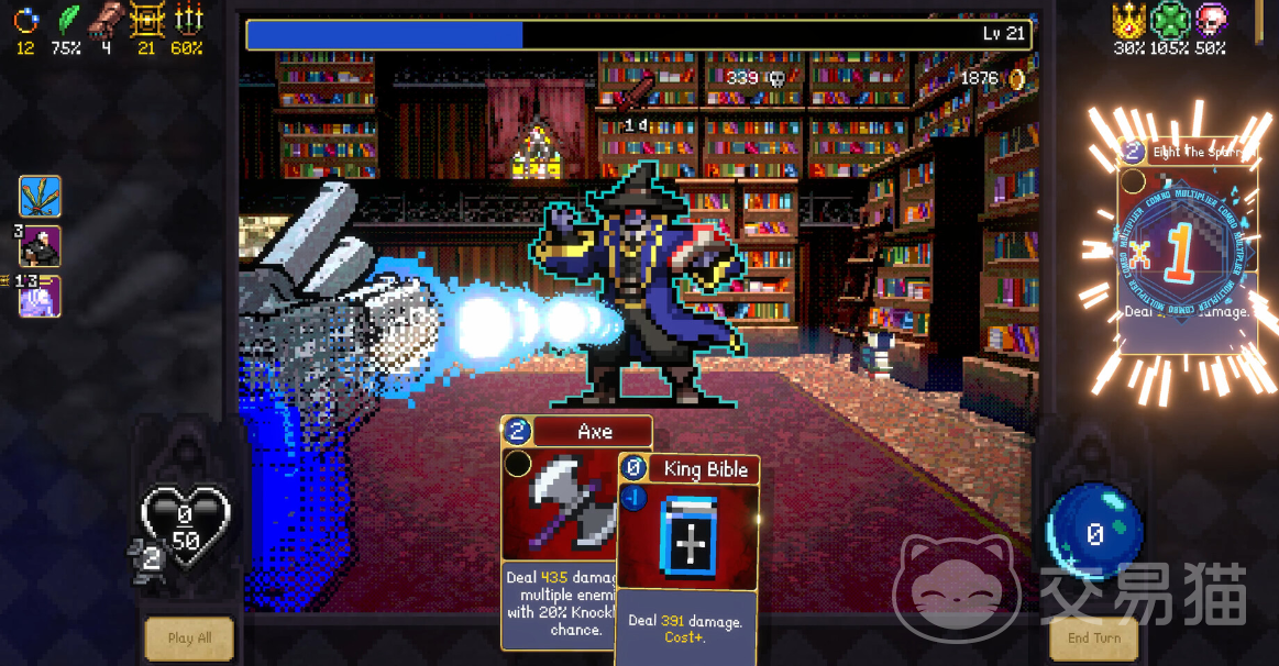 战斗系统围绕“法力梯度出牌”与“指数级连击叠加”展开:每回合必须按卡牌标注的法力消耗值由低至高依次打出;而真正的策略深度在于连击链——第二张牌在成功衔接后,伤害将翻倍为前一张的2倍,第三张则达4倍,依此类推。例如首张造成100点基础伤害,连击至第三张即跃升至400点。万能牌作为系统关键设计,可无消耗插入任意位置,重置连击判定窗口,使连击层数突破常规限制,支持玩家持续挑战10连、20连乃至理论上的无限连击上限。