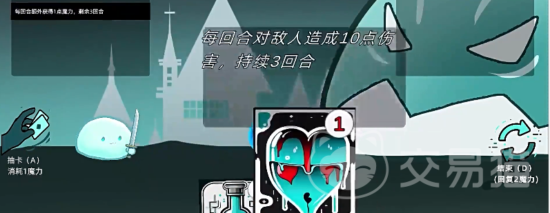战斗采用严格回合制结构。玩家需在自身回合完成三重目标:施加新DOT层数、维持魔力循环(通过回魔卡)、解除负面状态(借助解控卡),以应对Boss的高频率反击、自动回血及毒性反制。所有DOT伤害统一在Boss行动结束后结算,由此形成“施放—承伤—跳伤”的动态循环,每一回合都存在变量叠加与策略重校准空间。