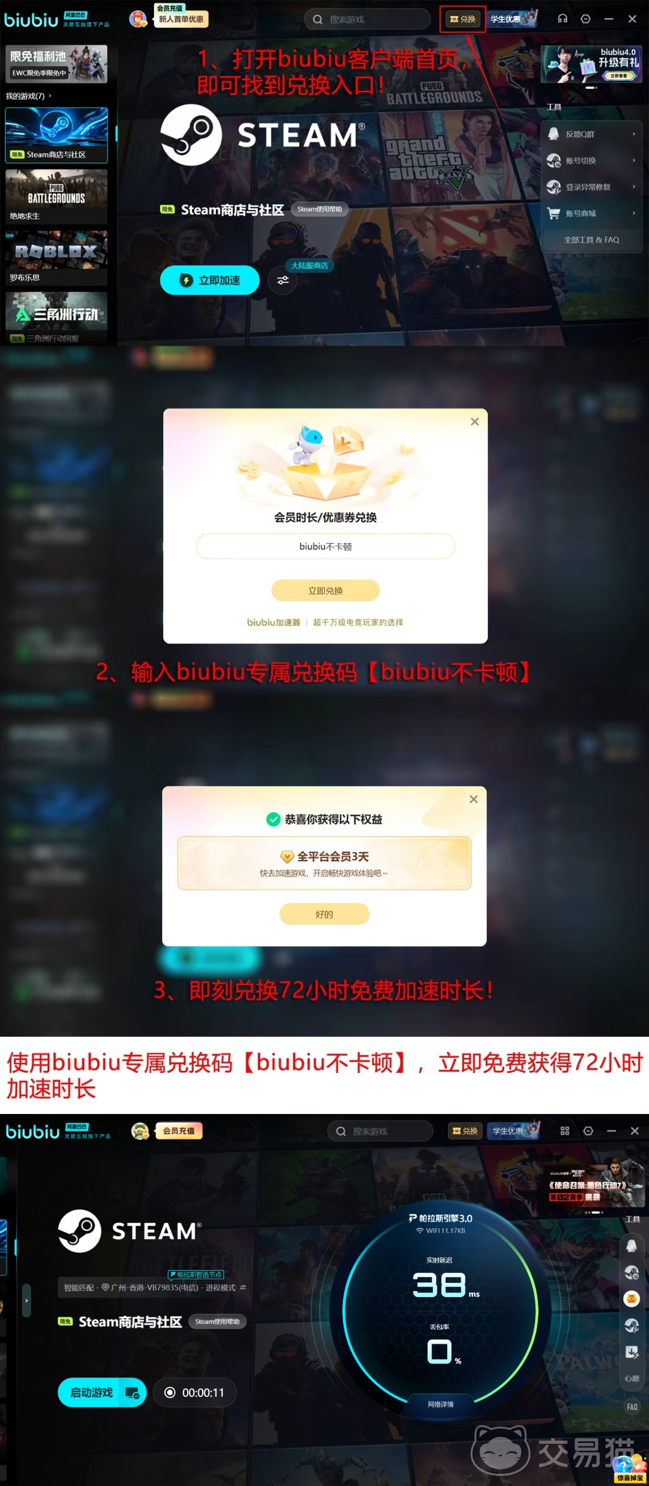 针对新用户,相关服务提供首次注册即享24小时免费加速时长;完成指定操作并输入激活码【biubiu不卡顿】后,还可额外获得72小时延长权益。综合计算,新注册用户最高可累计获取96小时无限制加速体验,显著降低初期试玩门槛,提升整体运行可靠性。