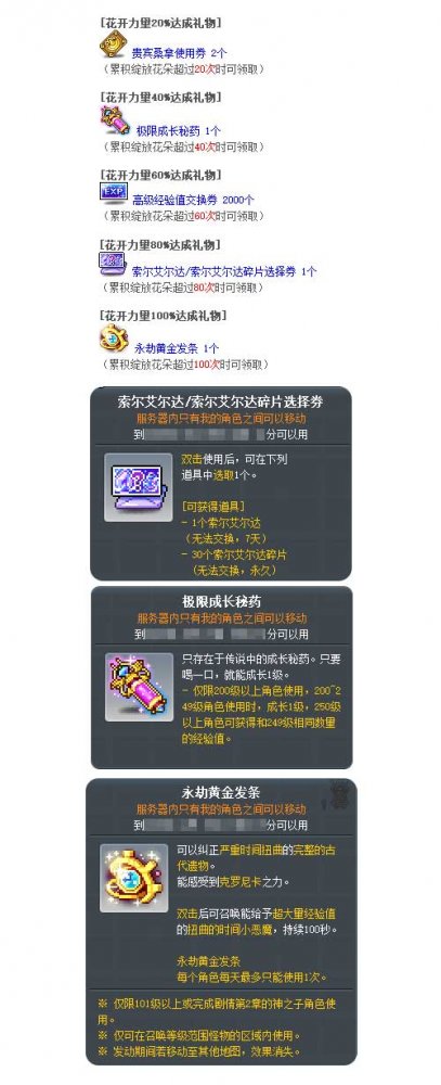 绽放力量达到指定数值,可以获得以下奖励: