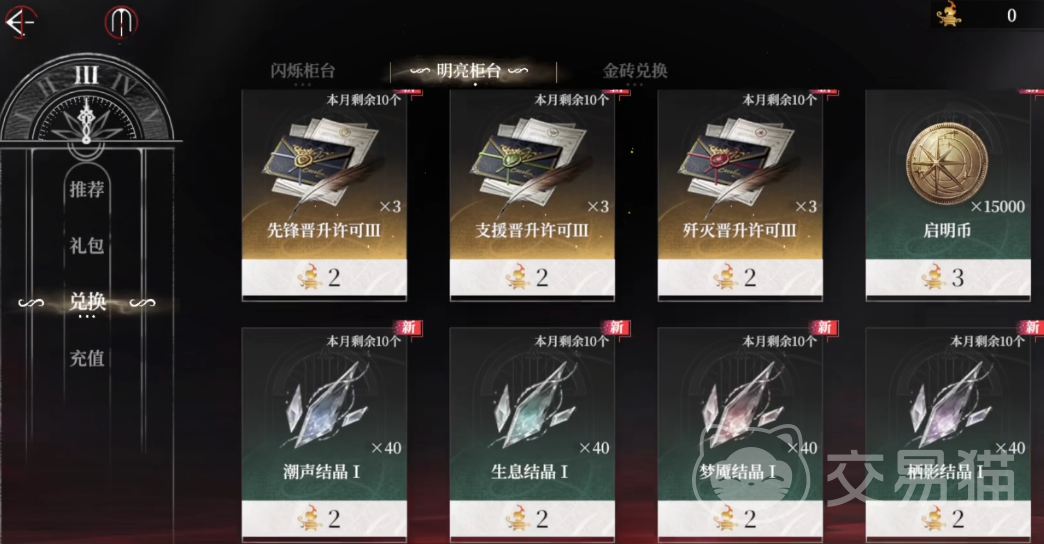 2、商店兑换:非重氪玩家可通过【明亮柜台】使用特定资源兑换。该渠道每日限购,且兑换所需材料稀有度较高,掉落率较低,建议结合日常任务与活动资源统筹规划使用。