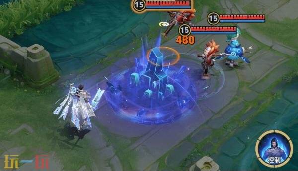 大禹向指定位置召唤戍鼎并提供视野,友方英雄在靠近戍鼎时获得累计300( 60/Lv)( 6%额外生命)回复(CD:20秒)同时大禹自身获得75( 15/Lv)加速(2.5秒内衰减,自身生命满时不消耗能量生效50%)