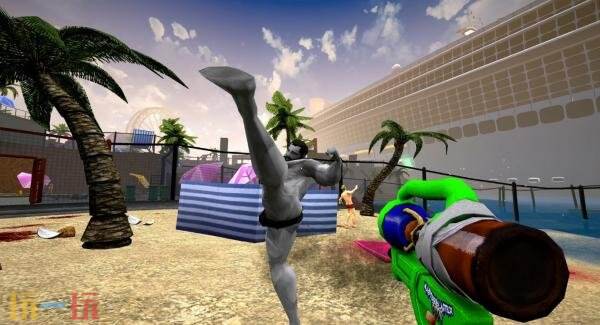 手里还拿着一杯果味鸡尾酒,心中怒火熊熊燃烧,这位“邮差老兄”现在必须在烈日炙烤下,一路拳打脚踢、撒尿扫射、枪林弹雨,杀出一条血路,穿过一群被洗脑的狂热分子,在一场例行的追捕中夺回他的枪支。没错,他心爱的霰弹枪被没收了——但别担心。“邮差老兄”从来就没赤手空拳。他只是更加随机应变罢了。而且这一次,他的动力一如既往地强劲。
