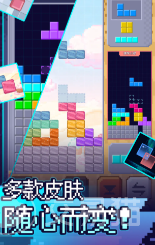 本作在视听表现层面亦有显著升级:方块下落轨迹、碰撞反馈、消除动画均经过物理引擎优化,触控响应迅捷无延迟,操作手感精准顺滑;美术采用清新像素风格,主色调柔和不刺眼,辅以多套可解锁方块皮肤,满足个性化表达需求。所有对战均基于纯操作公平性设计,杜绝数值成长压制,胜负完全由玩家反应速度与决策质量决定。