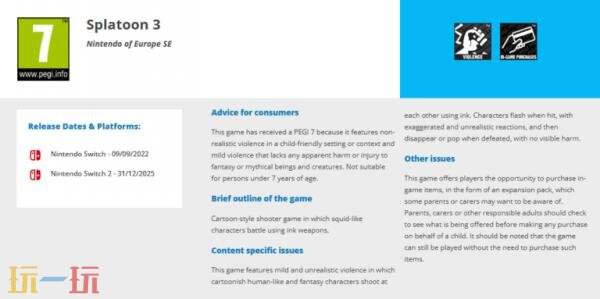 继早些时候对《皮克敏3豪华版》进行评级之后,泛欧洲游戏信息组织也对Switch2版的《斯普拉遁3》(Splatoon 3)进行了评级。