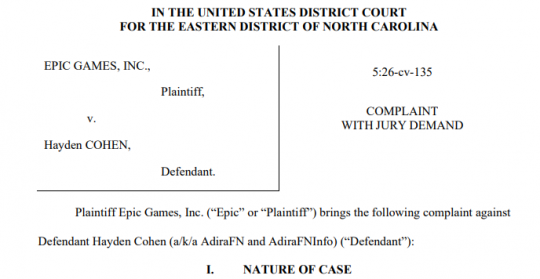 不过被告为了提升个人知名度以及流量,在2026年1月到2月期间多次在X以及Discord等平台散播《堡垒之夜》未公开的机密游戏情报,严重影响公司与合作伙伴的信用关系。