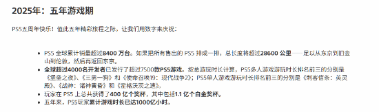 本周,PlayStation 5迎来了它的五周年纪念日。为了庆祝它的生日,除了告诉粉丝们PS6的发布还有一段时间之外,索尼还公布了一系列惊人的数据,让大家更直观地了解这五年间发生的一切。