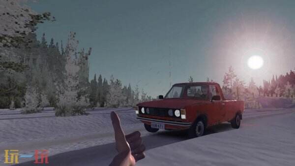 在这个天寒地冻的版本中,用车体验也变得极具挑战性。不像夏天的惬意,现在每次出门前你都得先拿着工具刮掉挡风玻璃上的厚冰,还要在这个没有任何驾驶辅助的物理引擎中,小心翼翼地操控一辆来自上世纪60到90年代的老爷车在冰面上漂移。如果不幸翻车或者车辆抛锚在积雪几十公里的林道深处,那绝对是一场让人绝望的徒步求生。但正是这种这种近乎变态的真实感与莫名其妙的黑色幽默,构成了游戏独特的魅力。