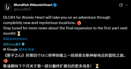 Mundfish工作室今日发布动态,预热《原子之心》的第四个DLC,将带玩家踏上探索新神秘地点的冒险之旅。第四个DLC也是本作的最终扩展包,将于下个月公布更多消息。