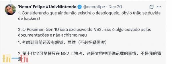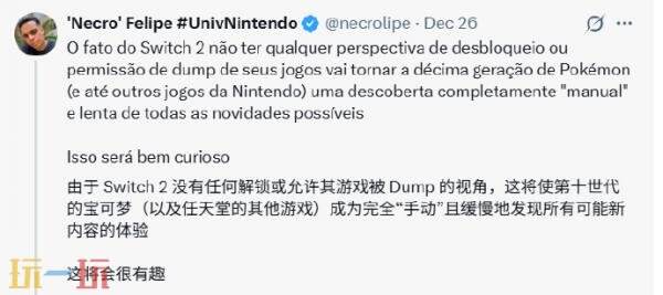 接着,他又提到:Switch 2没有任何破解或游戏文件转储的前景,这一事实将使得第十代《宝可梦》(乃至任天堂的其他游戏)的所有可能的新内容,都需要完全“手动”且缓慢地去发现。