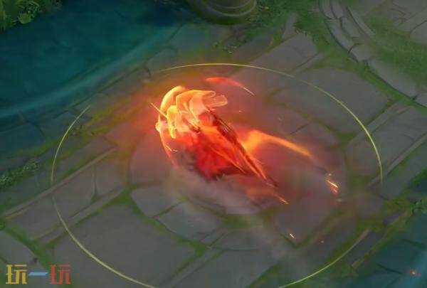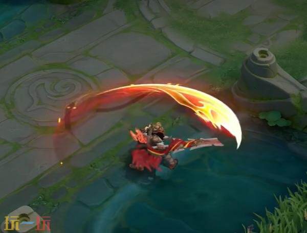 三技能:挥斩瞬间,肩甲瑞兽之形随刀势呼啸而出,拖曳出熊熊火焰轨迹,似有斩天裂地的毁灭气势。