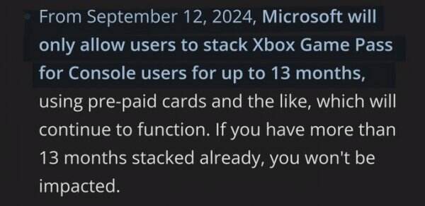 有玩家指出,限制时长堆叠的意图在于让用户不能在黑色星期五等优惠期间大量购买订阅“薅羊毛”,以此赚取更多的订阅费。另一方面,微软允许已订阅主机版XGP的用户继续以原价续订,但如果仍允许续订三年,本次涨价就变得没什么意义了。