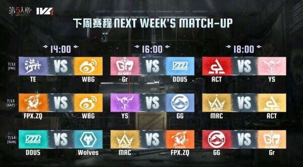 赛程已然过半,ACT仍未拿到首胜,大概率无缘季后赛,但也正因如此他们可能成为下半轮比赛中的不确定因素。下周,榜一MRC与榜二FPX.ZQ就要兵戎相见争夺榜一,成都Wolves与 DOU5将迎来他们争夺季后赛门票的关键一战!让我们7月12日锁定直播间一探究竟吧!