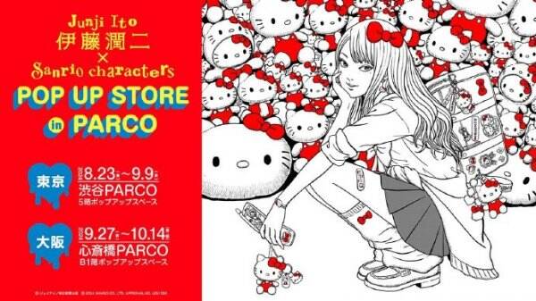 伊藤润二 x 三丽鸥联动快闪店,定于8月23日及9月27日分别在日本东京及大阪开幕。期间将发售以富江、十字路口的美少年与三丽鸥经典角色为主题的亚克力立牌、文件夹、徽章、T恤以及贴纸等周边产品。