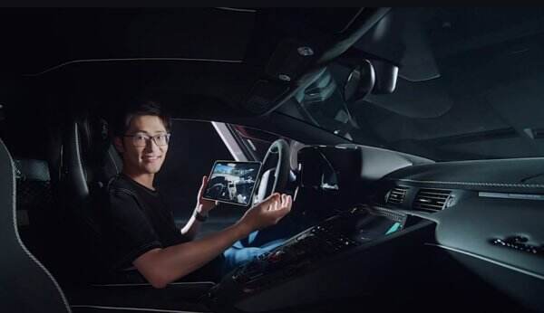 发布会现场,Tim更是坐进兰博基尼驾驶舱,拿游戏车内视角与真车直接比拼,感叹游戏品质打磨之用心。