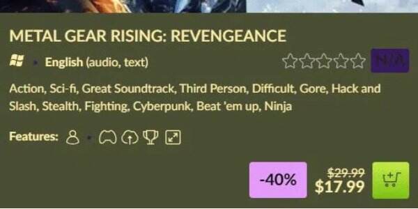 虽然距离首发可能过去了11年,但《合金装备崛起:复仇(Metal Gear Rising: Revengeance)》这款游戏即使放在今天仍然令人十分享受。幸运的是,PC版粉丝现在可以购买无DRM版本——该作最近登陆了GOG平台(锁国区),首发6折特惠,活动截止到7月11日。