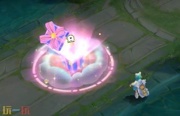 * 二技能:马尔济斯从突然打开的礼物盒子中欢快地蹦跳出来,周围环绕着轻柔的梦幻云彩,礼盒开启的瞬间还伴有星星迸发的效果,这是小乔送给你的治愈礼物哦~