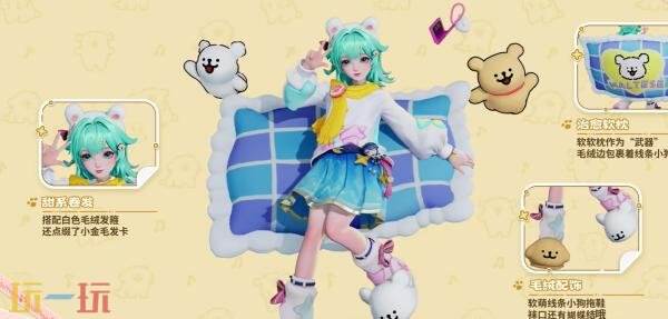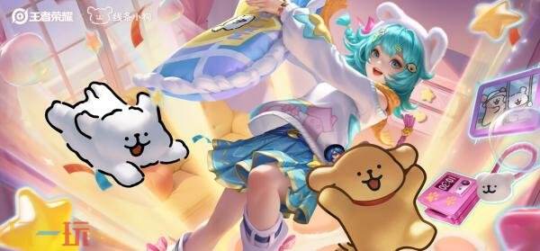 本次【小乔-线条小狗】联动皮肤,将线条小狗的软萌线条与毛绒质感相结合,更通过枕头、拖鞋等居家元素跟潮流装饰的搭配,打造了元气治愈少女的形象——小乔正和她的线条小狗伙伴,在暖冬的明媚阳光中为你送来毛茸茸的快乐~