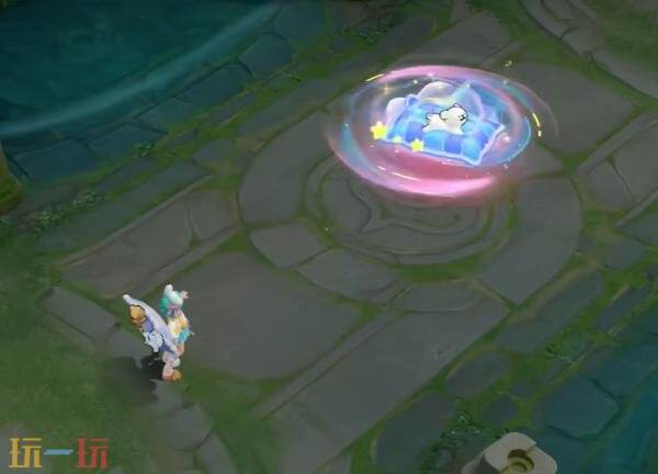 * 一技能:马尔济斯乖巧地趴在软绵绵的枕头上,被淡粉色的云雾包裹向前冲刺,身后划出一道缀有星星的蓝色拖尾,仿佛在梦境中穿梭,留下柔软又治愈的弧线。