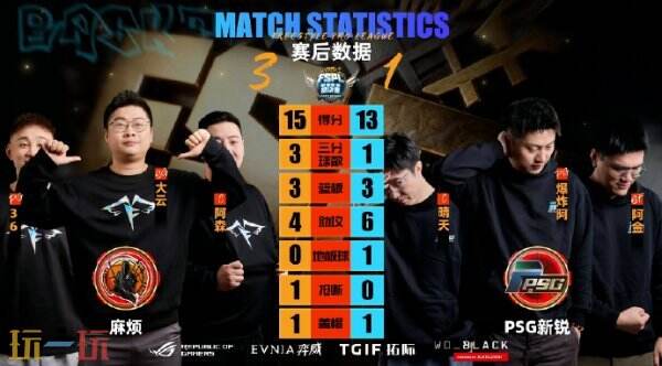 败者组比赛中麻烦遇到了PSG新锐的挑战,第一局比赛1分险胜对手,第二局比赛PSG新锐战队3分命中率堪忧,麻烦战队取得了赛点,第3局比赛PSG新锐1分险胜扳回一城,第4局比赛麻烦顶住压力,总比分3比1战胜对手,PSG新锐无奈出局。