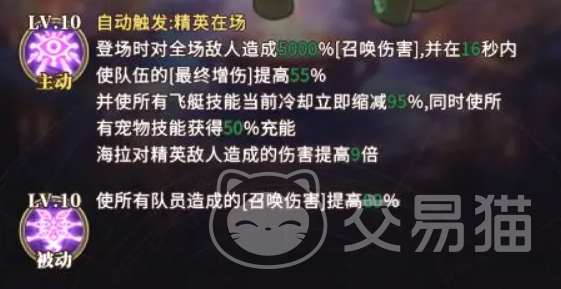 海拉的主动技能为登场即触发:对全体敌方单位造成5000%召唤伤害,并在接下来的16秒内,使全队最终增伤提升55%。该效果持续期间显著放大队伍整体输出效率,尤其利于高爆发节奏的战斗场景。