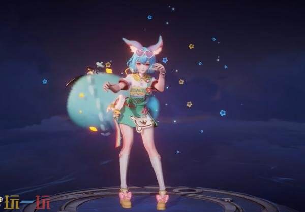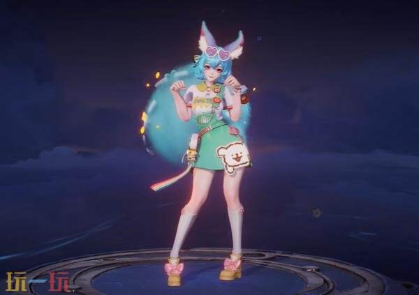 发型设计上,一头利落的蓝色短发,发尾俏皮微翘。配饰设计上,专属的爱心墨镜和佩戴在身的线条小狗徽章尽显潮玩本色,腰间的拍立得随时准备记录美好瞬间~还有妲己毛茸茸的尾巴上,点缀着如地图线路般的虚线与小巧的地标图标,充满萌趣。
