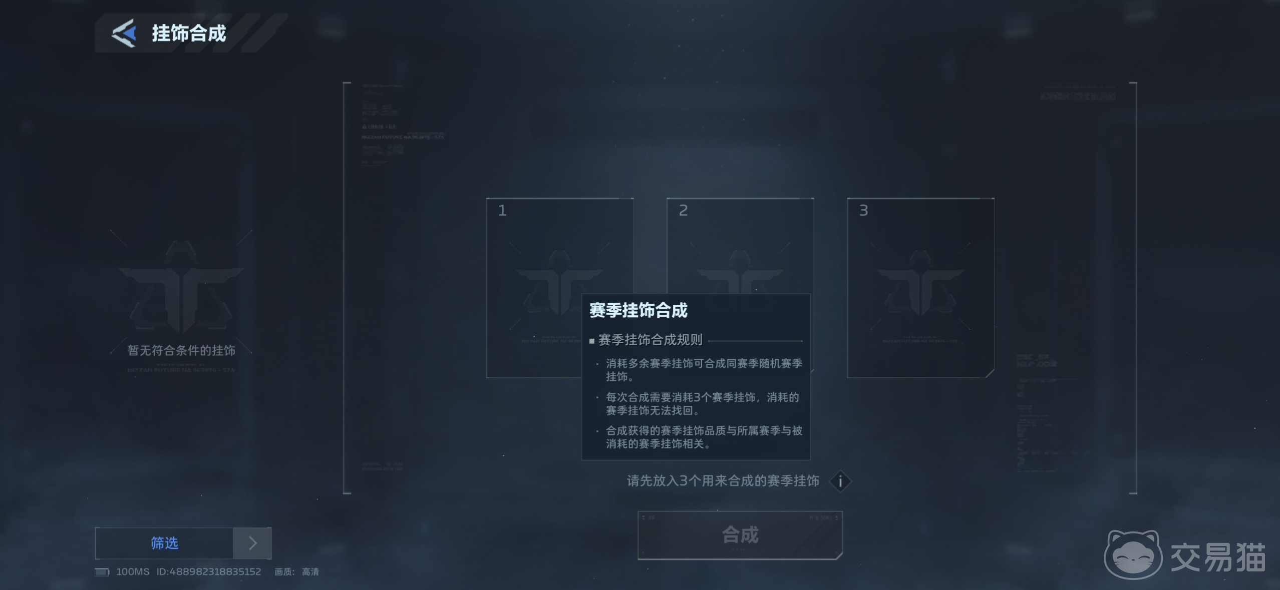 游戏上线后同步开放了多类主题挂饰,支持直接装配于主武器部位,显著提升视觉辨识度与角色表现力。其中,赛季专属挂饰需通过合成解锁,每次合成固定消耗3个同系列挂饰,合成路径清晰可控,无随机失败机制。
