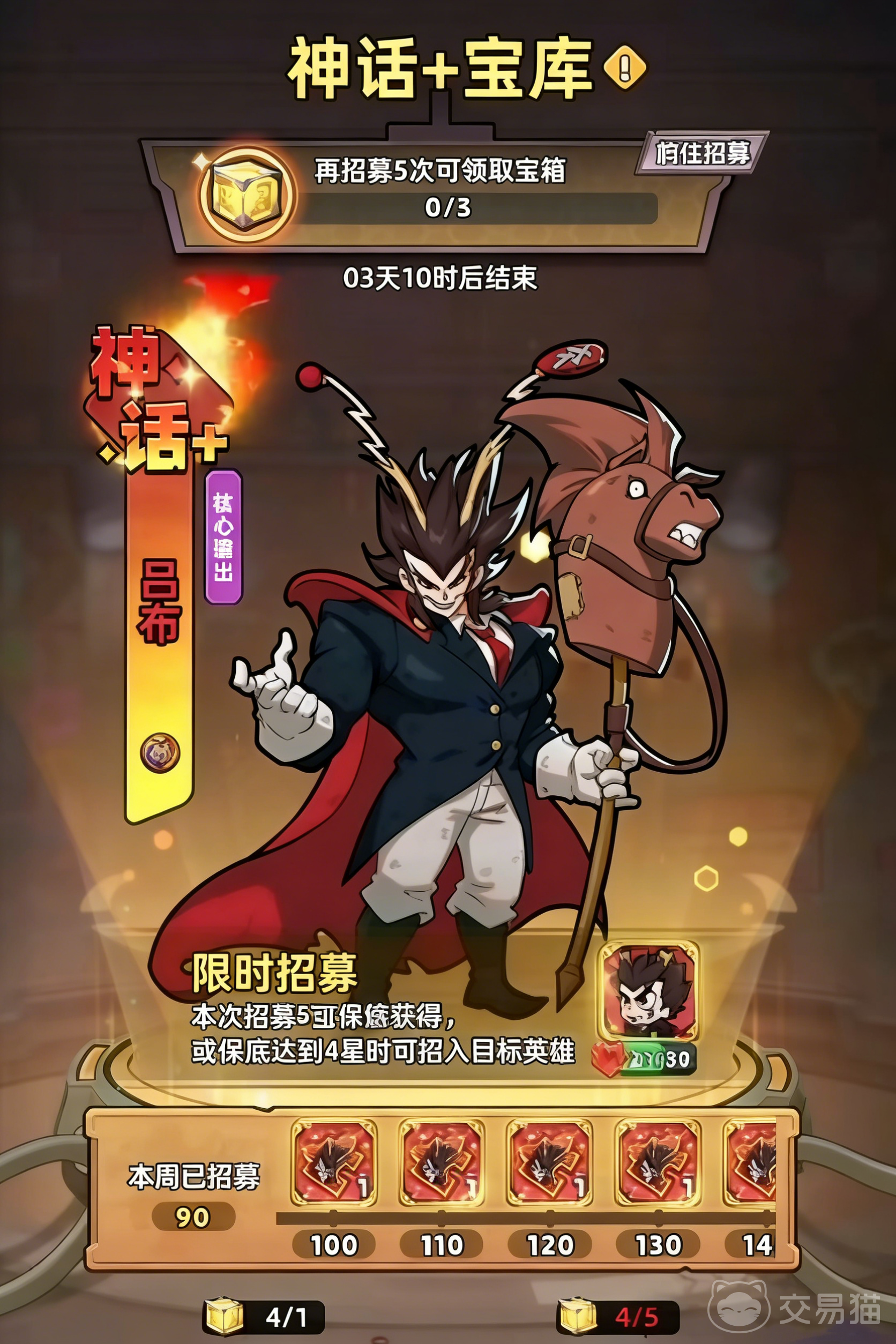 每期神话宝库均设定唯一主角英雄,例如当前轮次为吕布。玩家每次招募将固定获得其碎片,且不设保底失败机制;只要未开启最终宝箱,所有抽卡资源均可持续用于该英雄升星。当碎片累计至四星标准后,吕布即完成解锁,并同步进入常驻卡池,后续可自由招募。