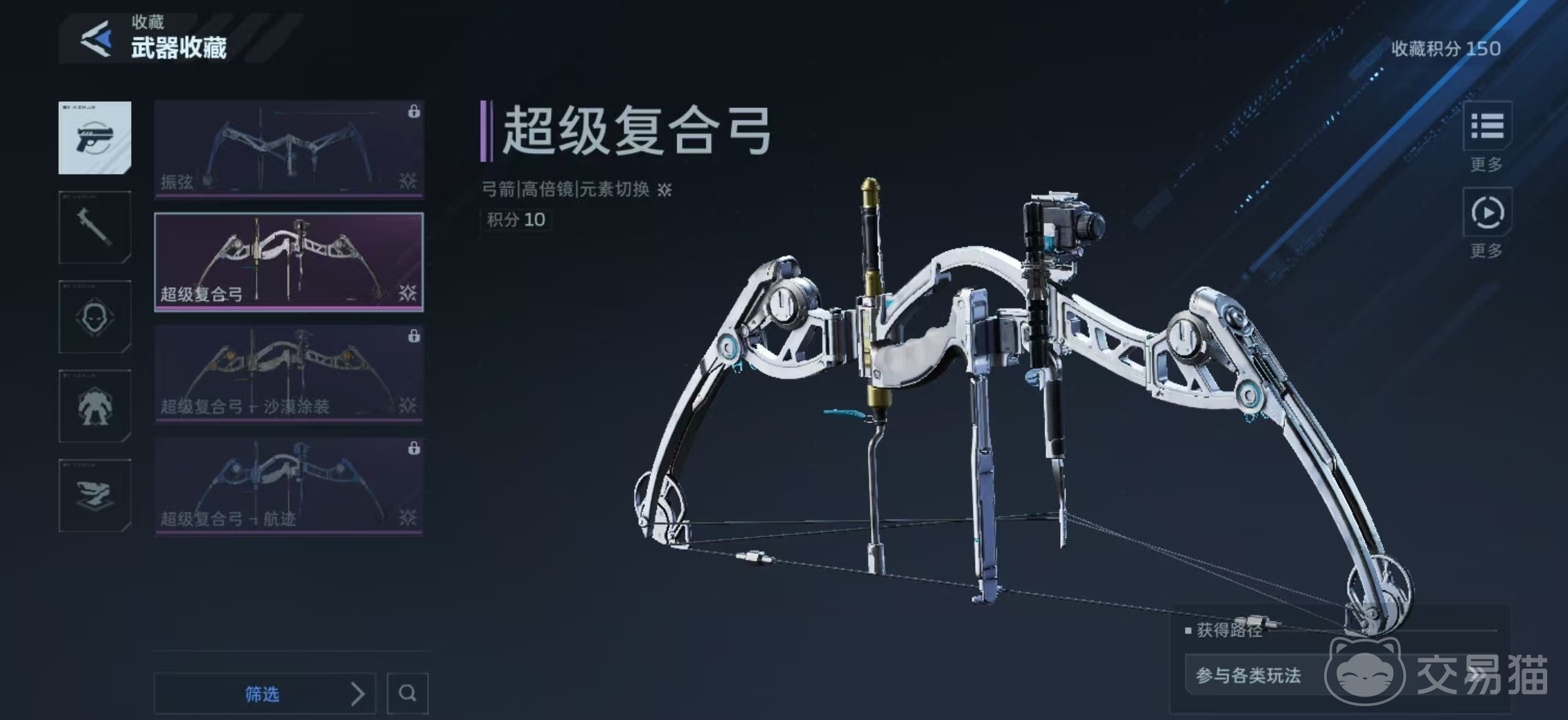 截至目前,《逆战未来》共上线两款紫色传说品质弓箭:振弦与超级复合弓。其中超级复合弓额外拥有沙漠涂装与航迹两款专属皮肤。尽管二者基础面板完全一致——单发伤害均为816,射速同为35,但技能设计逻辑截然不同,直接决定了它们在战场中的定位差异。