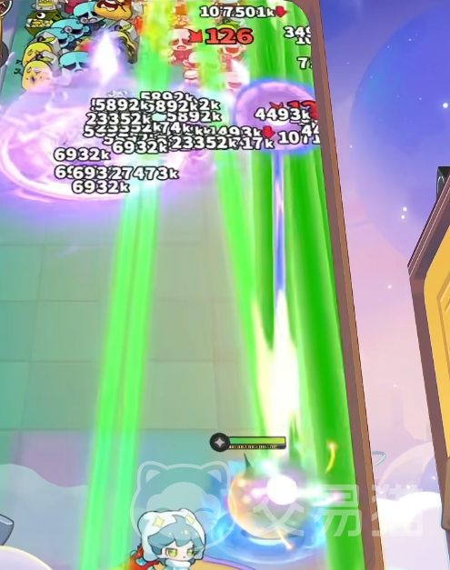 先看镭射眼——其核心输出依托于大范围持续激光扫射。该角色每次普攻会释放一列贯穿全场的高能镭射,覆盖区域极广,可瞬间命中路径上所有敌人;被击中的目标除承受基础伤害外,还会触发一次小范围爆炸,形成二次清场效果。这一特性使其在应对密集小怪群、多波次推进关卡时具备显著优势。但需注意,其攻击间隔较长,通常需3至4秒才能完成一次完整激光循环,因此不适合高频压制类节奏。