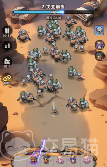 区别于传统动作类丧尸游戏,《出征吧勇士》以“角色即防御塔”为核心设计逻辑。开局前,玩家需从可选阵容中选定四名幸存者,并将其部署至机械高台——这些角色将自动锁定目标、释放技能并持续输出。随着关卡推进,还可招募更多幸存者加入防线,通过职业特性与技能组合提升整体火力。每局战斗均含随机元素,包括敌人波次配置、地形变化及资源刷新点,因此合理搭配角色属性、攻击范围与技能协同性,是通关的关键所在。