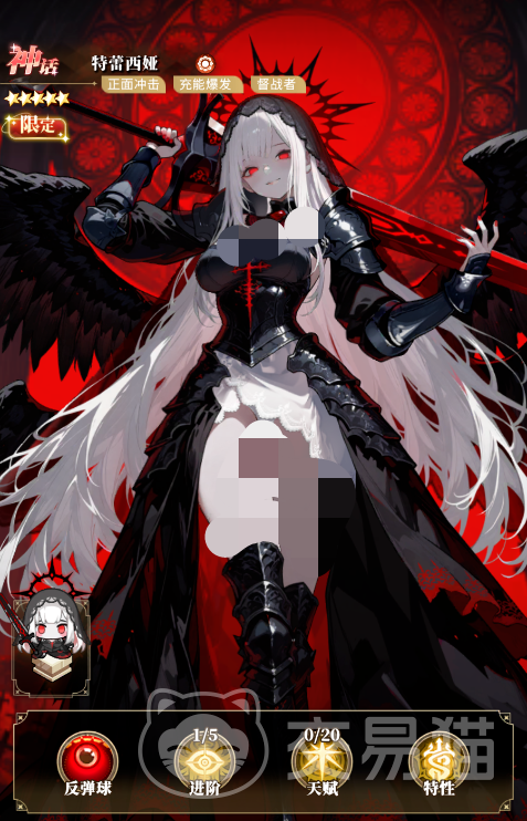 晴空双子中的特蕾西娅是一位限定神话级伙伴,定位为高爆发、强持续压制型冲击系输出角色。其机制设计在全角色体系中具备显著辨识度:以召唤骑士协同作战为核心逻辑,通过“异端裁决”与“狂热之魂”两大核心技能构建节奏分明的攻防循环,在队伍中承担主力清场与Boss压制双重职能。