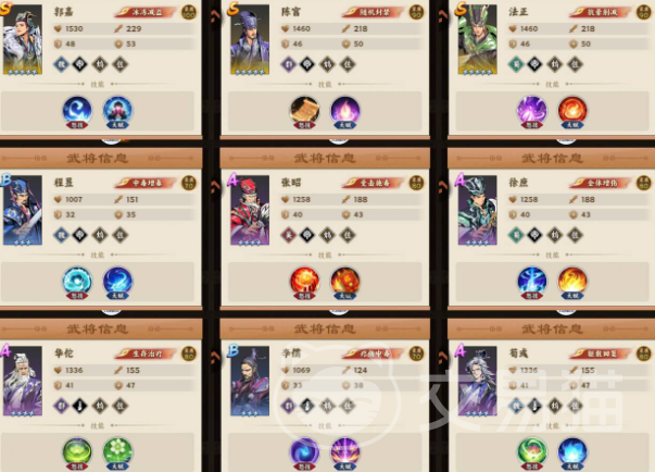 阵容构建需遵循“羁绊优先、星级次之”的原则。即便武将星级不高,只要达成6人谋士组合即可激活基础羁绊效果,显著提升群体法术伤害与控制命中率;相比之下,单个高星但脱离羁绊的武将实战价值反而偏低。资源应集中投入核心角色:郭嘉与程昱作为主力输出位,建议优先培养至黄色二星及以上;华佗承担关键治疗职能,星级亦需重点保障;其余谋士仅需满足羁绊解锁条件,前期无需额外投入养成资源。