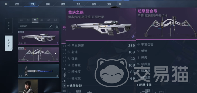 主武器推荐使用裁决之眼。该武器并非依靠基础射速或弹容制胜,其核心价值在于技能链设计:开启主动技能后,暴击率与暴击伤害同步提升;一旦触发暴击,将立即获得攻击速度加成。三重增益叠加,使单次技能周期内的DPS呈指数跃升,足以穿透机甲厚重的装甲结构。副武器建议搭配超级复合弓——当裁决之眼技能处于激活状态时,可同步强化超级复合弓的蓄力效率与箭矢穿透力,形成持续高压输出循环。