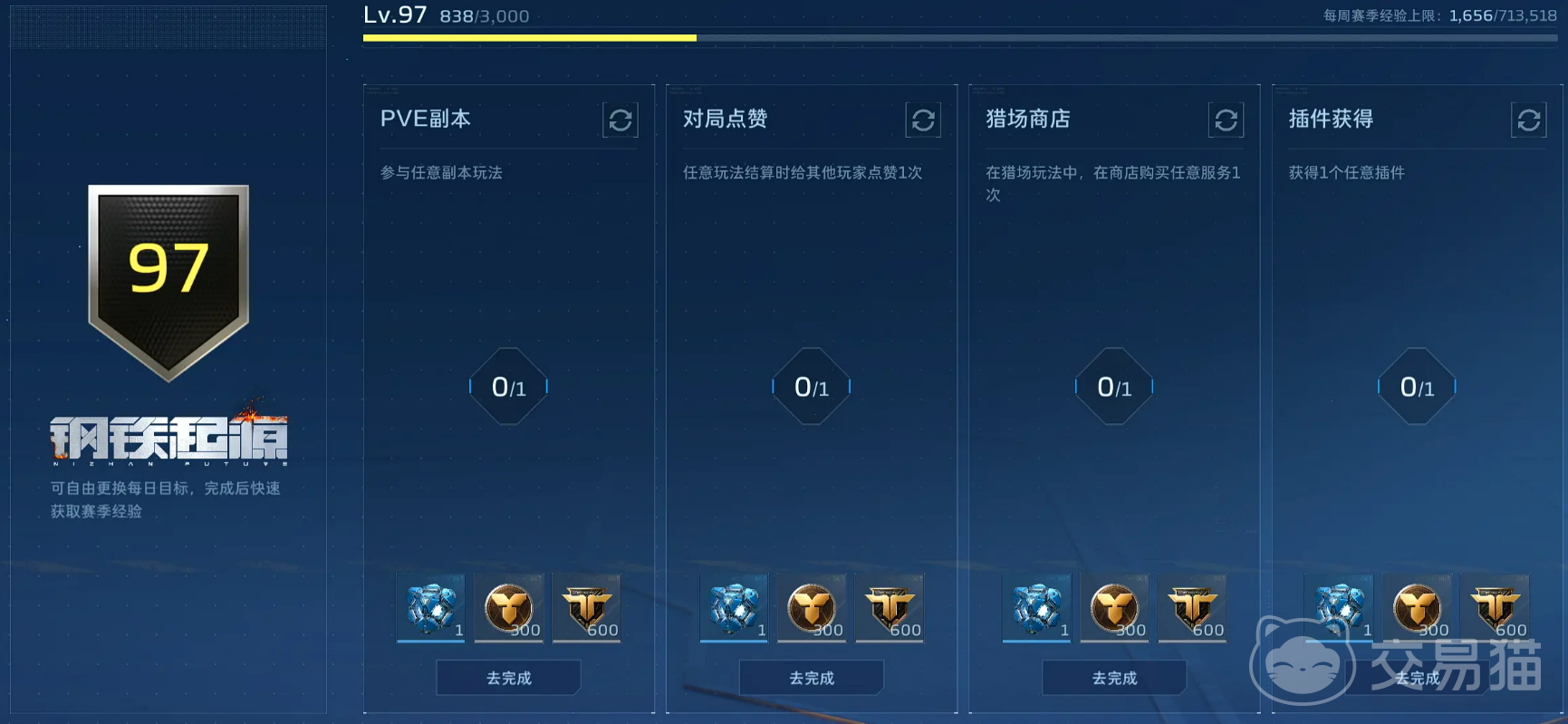 通行证升级依赖任务经验积累,但设有明确上限:每周经验获取上限为16800点,而每升一级固定消耗1600点经验,因此单周最高可提升10级。每日任务共四项,覆盖PVP对战、PVE副本及大厅交互等场景,任务类型分布均衡。若遇到执行难度较高的目标,可通过任务界面右上角的刷新功能更换为替代任务,确保进度稳定推进。此外,任务完成除提供通行证经验外,同步发放赛季经验及钛金跃迁秘藏,实现多重收益叠加。